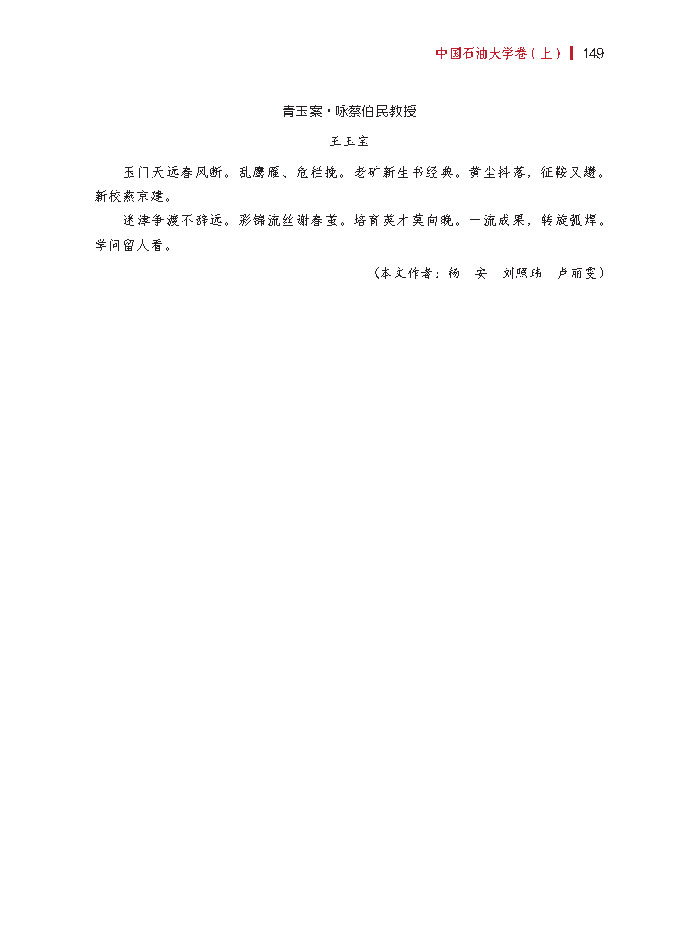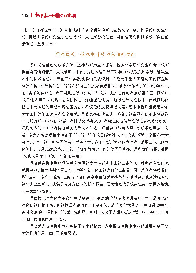 “要培养合格的石油机械专门人才,关键是要抓好师资队伍建设、专业建设和教材、实验室建设。”
