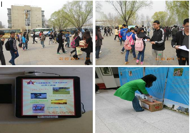 4月3日,开展了“节约一张纸,献出一片爱”活动,将废纸箱放置于各教学楼、宿舍楼,向同学们回收废纸,吸引了同学们的广泛参与。