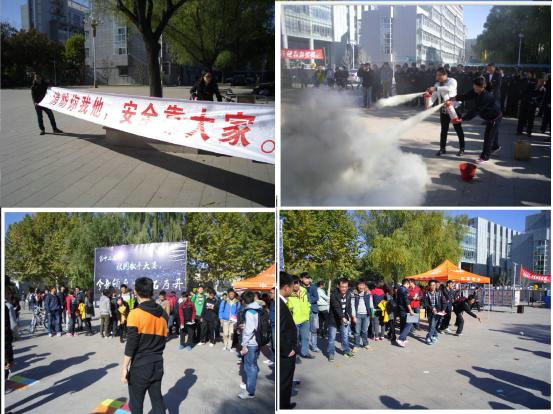 2014年11月5日中午,由学生工作处、保卫处、公寓服务公司主办,研究生民管会承办的主题为“人人知消防、处处有平安”消防安全主题宣传活动在我校南广场成功举办。