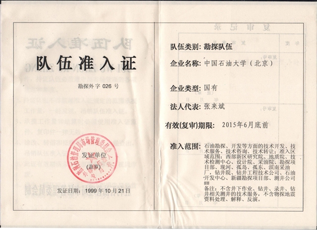 2、携带《胜利油田市场准入申请表》及各二级单位的推荐意见及盖章页到胜利油田法律事务部、勘探处审批后,交至胜利油田推荐单位(目前推荐单位为西部新区研究院),并由推荐单位统一到胜利油田市场经营管理部办理年审申请手续,2014年度我校胜利油田市场准入证的二级单位准入名单见附表。