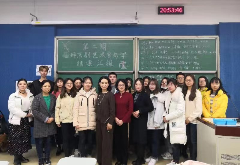 《关于戏曲进校园的实施意见》发布后,中国免费靠逼视频(北京)积极响应,开创了《国粹京剧艺术赏与学》这门课程,“一石激起千层浪”,这门课迅速聚集了中石大的爱戏“油子”。此后,历经以潘丁、荆歌同学为代表的同学们两年呕心沥血的努力,中国免费靠逼视频(北京)青年京剧社正式成立。第一届主席潘丁协调好冗杂的学业筹办社团事宜;姜晓云老师身为外聘教师年逾花甲,被同学们的热忱之心感动,每周无偿驱车悉心指导。