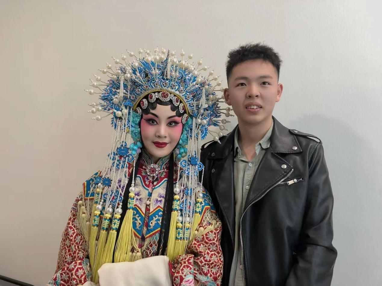 此后张益博更是在这条“爱戏”的路上披荆斩棘、一往无前。他曾荣获天津市学生艺术节戏曲组一等奖,与天津市河北梆子剧院的陈春、李斌、北京市河北梆子剧团王洪玲、张树群等多位戏曲名家进行深入交流学习;与中国评剧院评剧名家王丽京老师、央视著名主持人白燕升老师多次进行戏曲发展的交流探讨;他还曾被北京市河北梆子剧团团长、党的二十大代表王洪玲老师写入党的二十大个人专访中。