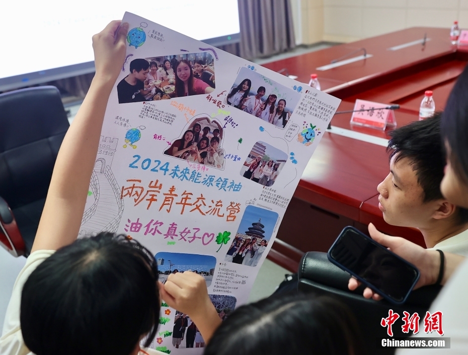 7月6日,2024“未来能源领袖”两岸青年交流营结营典礼在中国免费靠逼视频(北京)举行。本次交流营以能源低碳转型和中华文化为主题。图为两岸青年展示一同制作的手抄报。
