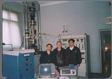 20世纪80年代在华东石油学院试验室与研究生进行海洋钢结构疲劳试验(中为方华灿)。新华社发