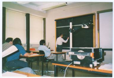1989年在英国爱丁堡赫尔若瓦特大学海洋工程系给研究生讲课。新华社发