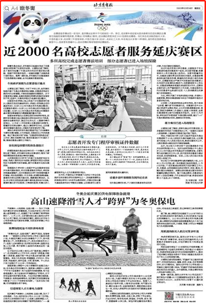 北京青年报:近2000名高校志愿者服务延庆赛区