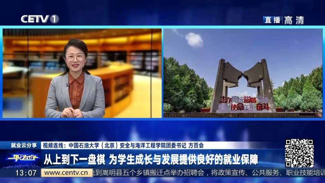 5月14日,中国教育电视台一频道全媒体互动直播栏目《一职为你》播出《全国普通高校毕业生就业创业工作典型案例——中国免费靠逼视频(北京)》。学校就业指导中心主任黄磊,安全与海洋工程学院团委书记、百会百通就业工作室负责人方百会介绍学校毕业生就业工作的优势和特色、引导学生到祖国最需要的地方就业的举措、指导帮助毕业生实现更高质量更充分就业的具体做法,优秀毕业生、目前工作于独山子石化公司的艾克旦分享了赴西部基层就业的初心和选择,应届毕业生、已签约中国海洋石油集团天津分公司的祝启康分享了学校在就业过程中给予的帮助和支持。