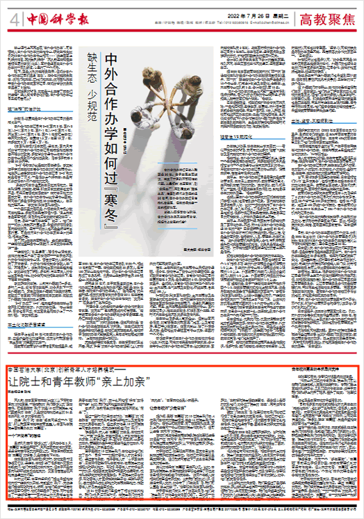 中国科学报:中国免费靠逼视频(北京)创新青年人才培养模式—— 让院士和青年教师“亲上加亲”