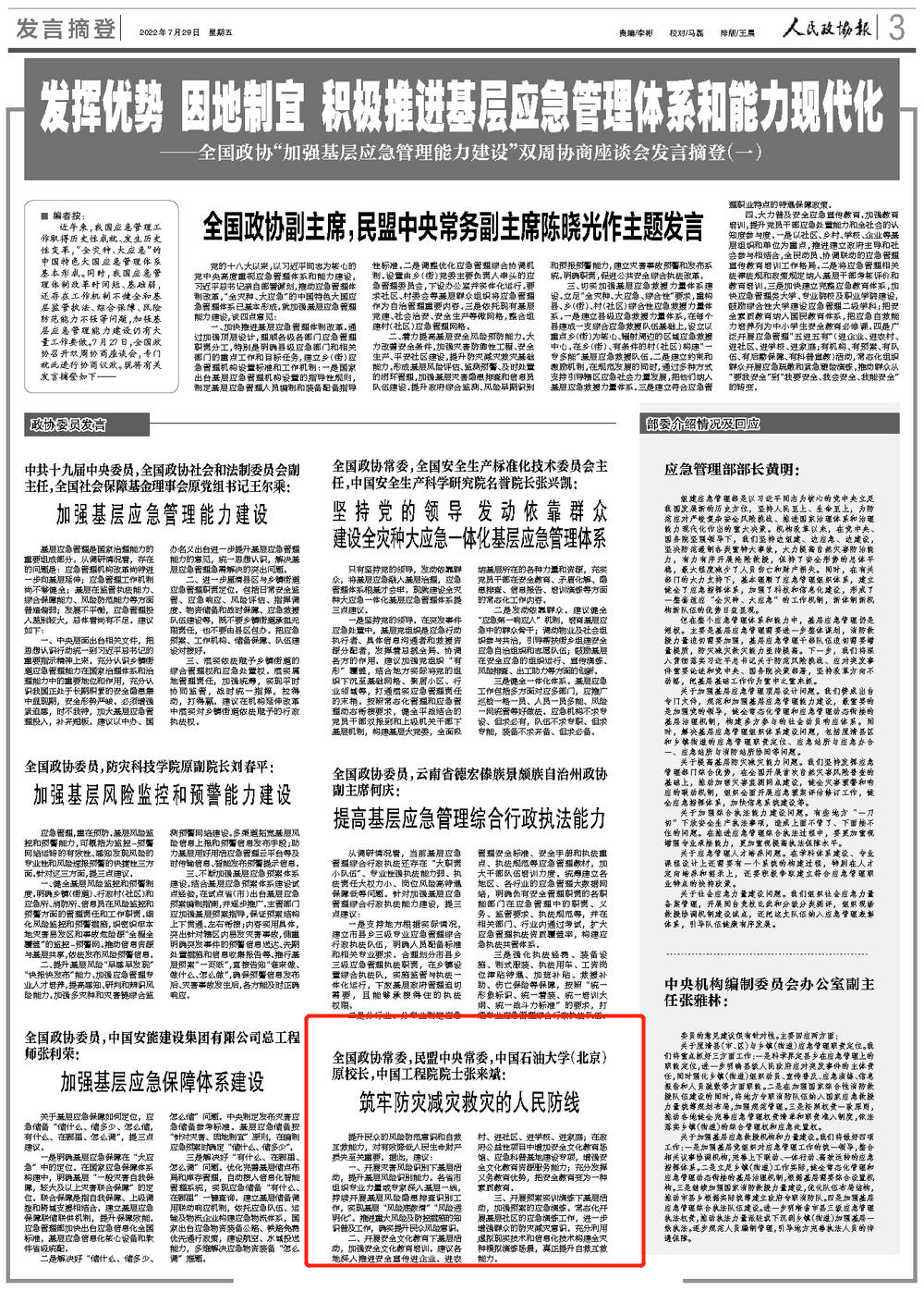 人民政协报:全国政协常委,民盟中央常委,中国免费靠逼视频(北京)原校长,中国工程院院士张来斌: 筑牢防灾减灾救灾的人民防线
