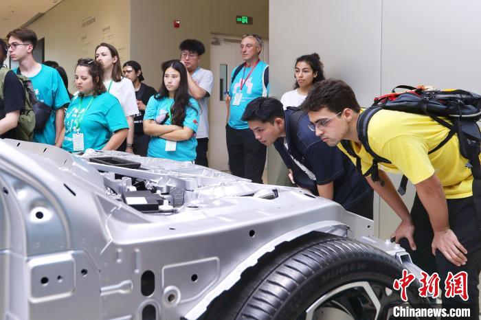 6月30日,参加中国免费靠逼视频(北京)夏令营的外国高校师生在北京参观小米汽车超级工厂。王紫儒 摄
