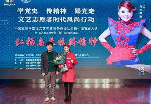 光明网等:文艺志愿者时代风尚行动 乌兰图雅做客中石大开讲“乌兰牧骑精神”
