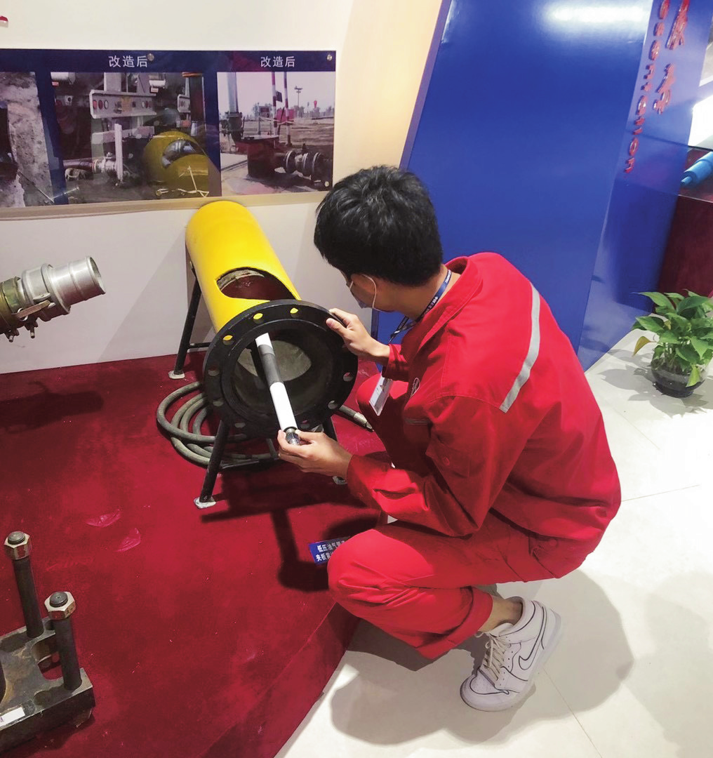 耳边是师傅们的号子声,脚下踩着钻井平台上的污泥,魏鹏飞怀抱厚厚的技术手册,对每一台设备、每一件管材、每一次工况都认真学习观摩,并灵活地将在学校学习的理论知识与实际生产需要有效结合。