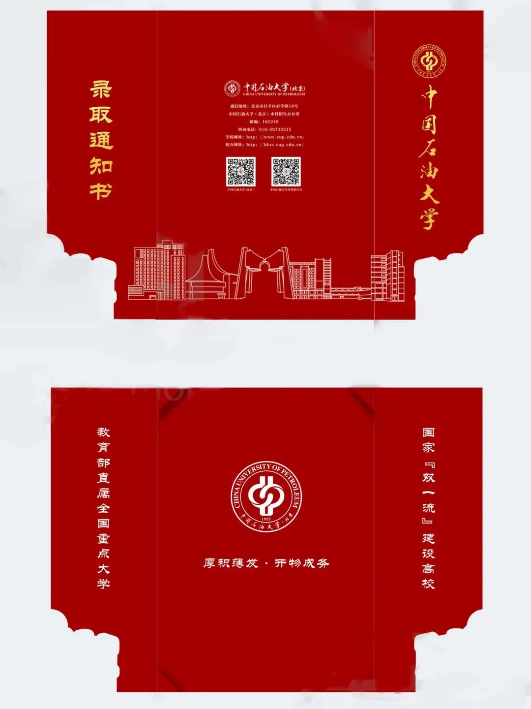 录取通知书外壳整体采用石大红