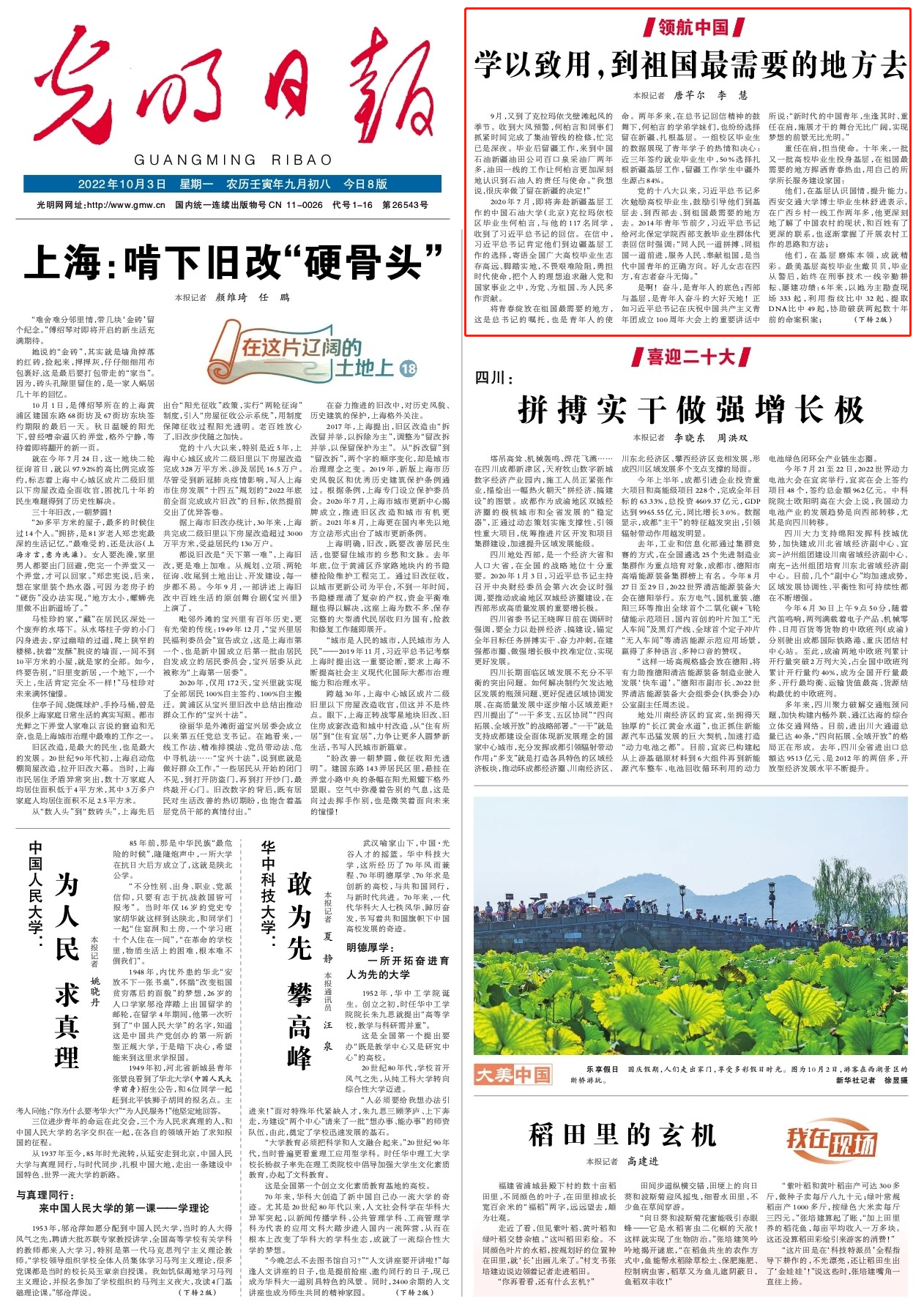 光明日报:学以致用,到祖国最需要的地方去