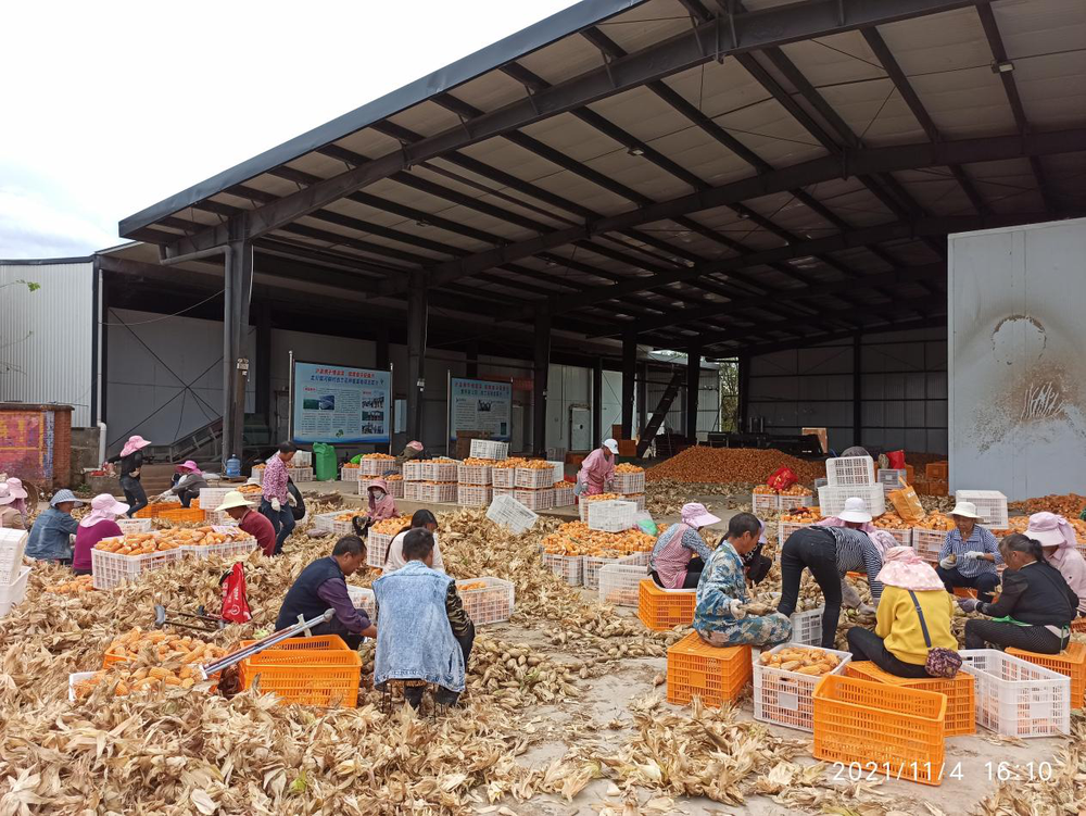 近日,在楚雄彝族自治州南华县龙川镇河硐村的田坝里,一期600余亩繁种玉米田遍野金黄迎来大丰收,二期温室玫瑰含苞待放开始采收上市,四期西蓝花陆续进行秧苗移栽,整个田坝人头攒动、机器轰鸣。