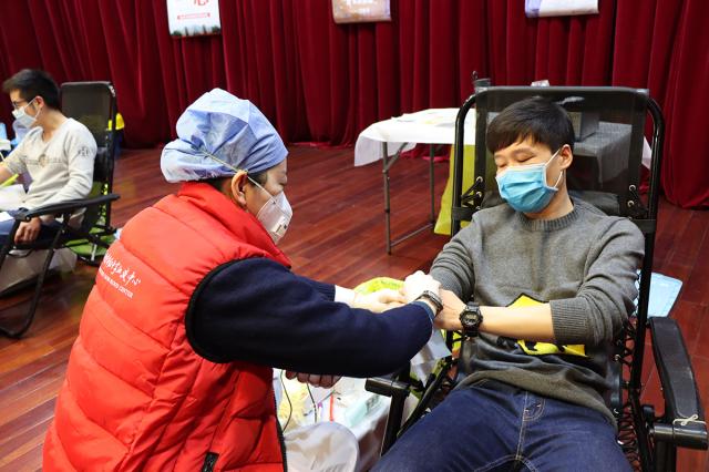 当天上午8时,市血液中心到学校进行了采血工作,经过严格的体温检测、消毒杀菌,确保无疫情威胁后,依次组织报名同学填表登记、测量血压、抽血化验、进行采血。前期报名的14名同学中符合条件的8名在校学生进行了无偿献血,另有5名在京不在校的同学也参与了社区献血。
