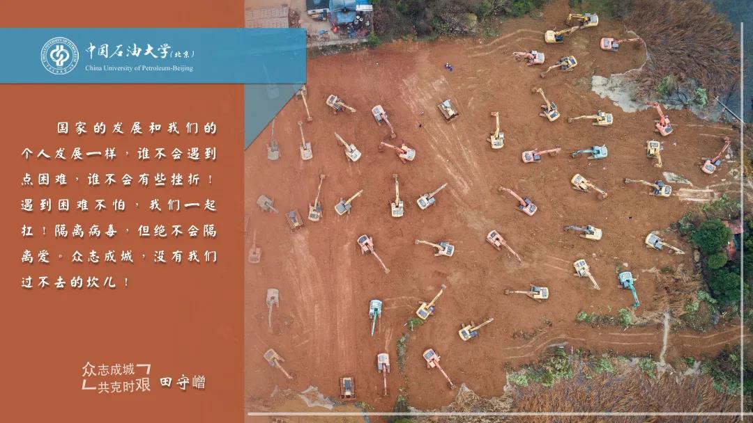 所以,同学们,用我们的具体行动支持战“疫”,在家少出门、不聚集,落实停课不停学的要求,热爱我们的石油工程专业,学好我们的石油专业知识!让我们一起期待风雨过后的日子到来,我们在宽敞明亮的学校教室里相见!