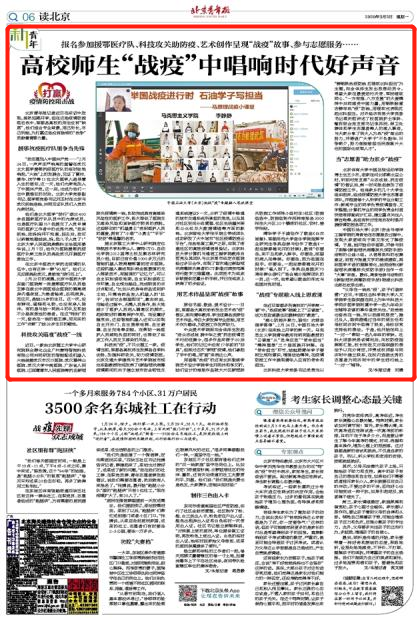 北京青年报、中新网:高校师生“战疫”中唱响时代好声音