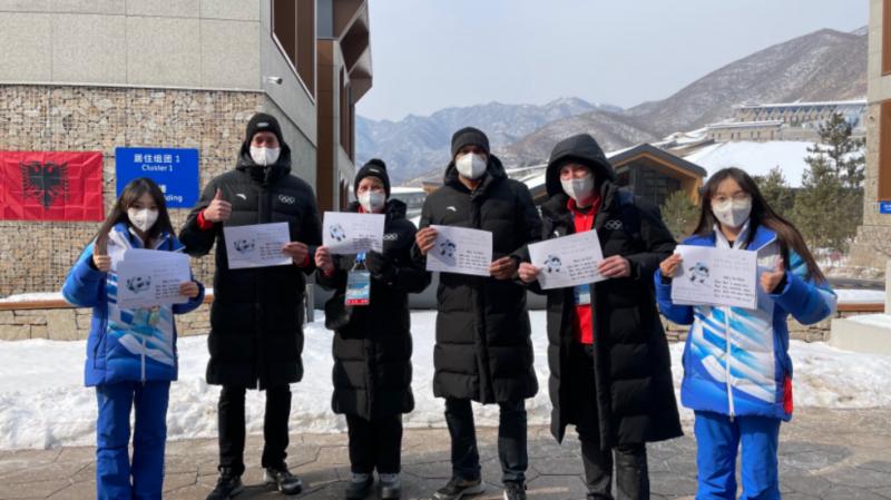 北京青年报客户端:延庆冬奥村志愿者古诗作画送别外国友人