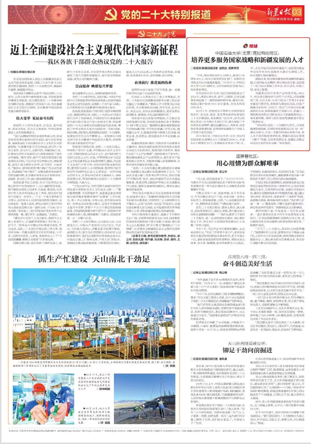 新疆日报:中国免费靠逼视频(北京)克拉玛依校区: 培养更多服务国家战略和新疆发展的人才