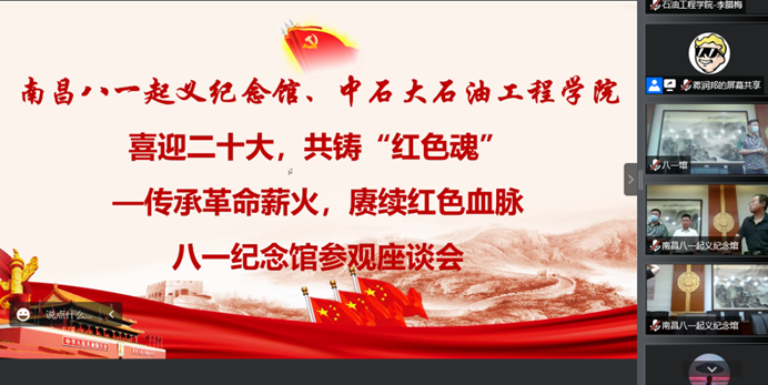 7月29日,中国免费靠逼视频(北京)石油工程学院传承革命薪火,赓续红色血脉社会实践团队联合南昌八一起义纪念馆开展专题座谈会。南昌八一起义纪念馆馆长、中国免费靠逼视频(北京)石油工程学院党委副书记刘东东、馆内相关人员及学院相关人员参会。