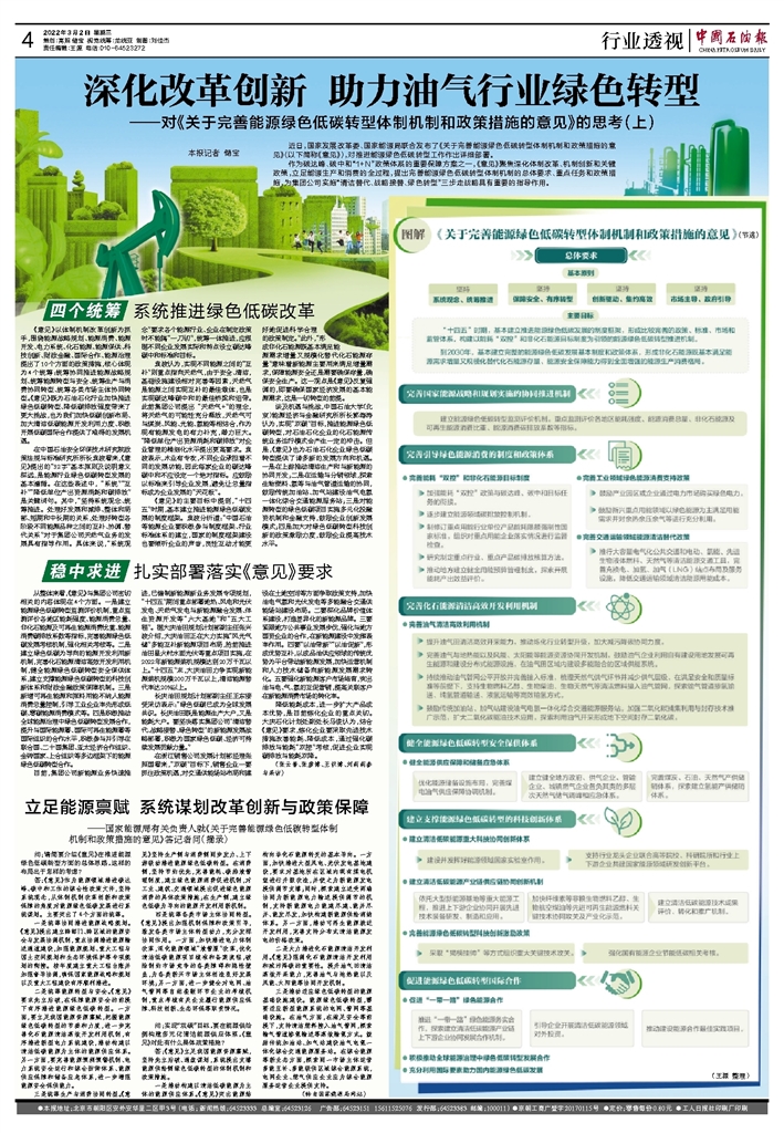 中国石油报:深化改革创新 助力油气行业绿色转型