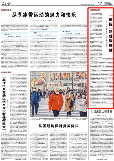 人民日报:“捕捉”刚性碳排放(科技大观)——全球加快低碳技术研发应用①