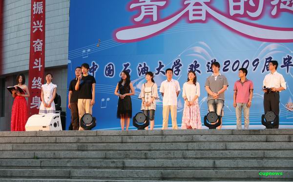 624晚,我校“青春的感动”欢送2009届毕业生文艺晚会在图书馆南侧的露天舞台隆重举行。校党委书记蒋庆哲、党委副书记雷玉江及各院系领导出席了晚会,为即将离开母校的2009届毕业生送来温馨的祝福和殷切的希望。