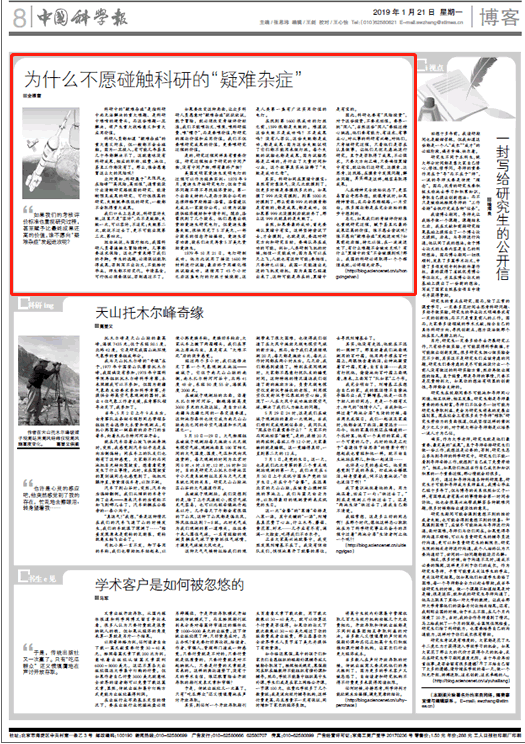 1月21日,中国科学报刊登了石大地球科学学院教师金振奎撰写的题为《为什么不愿碰触科研的“疑难杂症”》的文章。