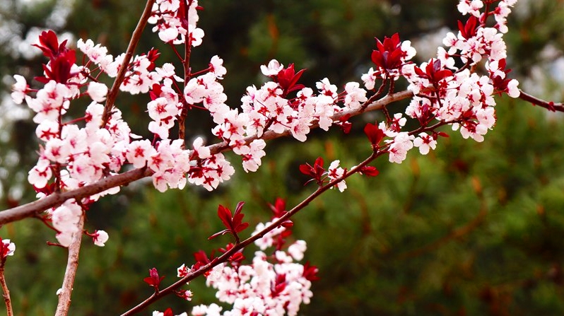 3月21日是二十四节气中的春分,也是春季九十天的中分点。人民网以“春分时节丨带你领略全国27所高校的满园春光”为题发布组图,报道了部分高校拍摄的校园花卉美景,石大校园紫叶李花照片入选。
