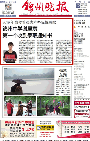 锦州晚报2019年7月25日头版头条对此进行了报道。