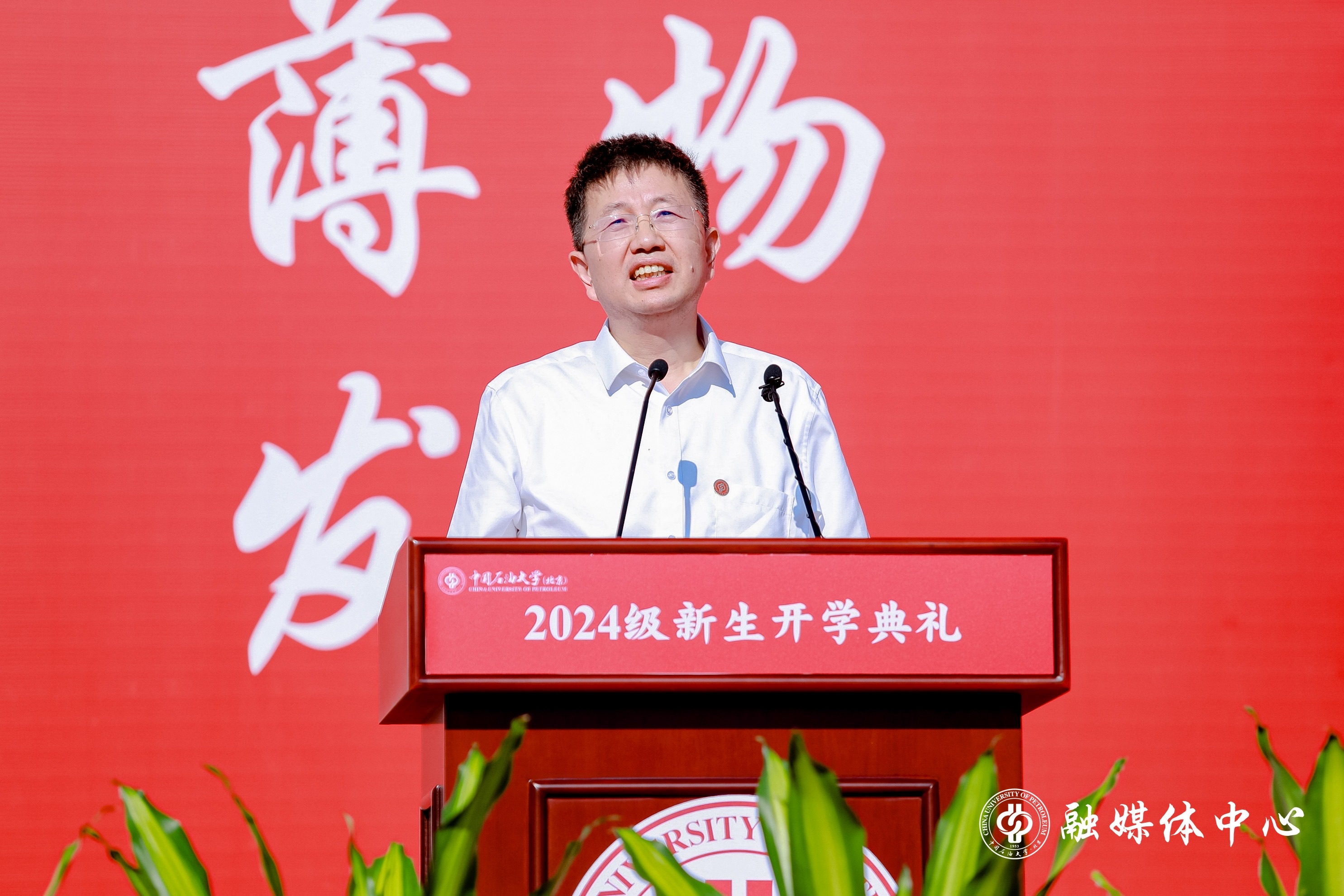 校长金衍在讲话中,以一名在中石大学习工作了34年的学长身份,与新生们共同探讨了两个问题:“为什么选择中国免费靠逼视频?你们想在这里收获什么?”他分享了自己对这两个问题的理解与体会。他指出,能源是一个国家的发展之基、生存之本、命脉所在,石油天然气是当今世界最为主要的能源和资源,事关国家能源安全。中国免费靠逼视频因油而生、与油共进,办学70余年来,培养了30余万优秀专门人才,是一所让我们国家从一个“贫油国”发展成为世界石油石化大国的功勋学校。随着油气勘探开发全面进入深层、深水、非常规,百年油田、万米深度、纳米尺度三个维度的科学与工程新领域,迫切需要大家去探索去创新。新一轮科技革命和产业变革改变了传统的生产方式,以绿色、低碳、智能等为特征的新质生产力加速形成,对能源领域高等教育提出新的科技和人才需求。青年学子们处于能源转型和科技创新发展的关键时期,必将大有可为、大有作为。在中石大,无论选择什么专业方向,都可以通过持续的深耕和创新探索,取得不凡成绩。
