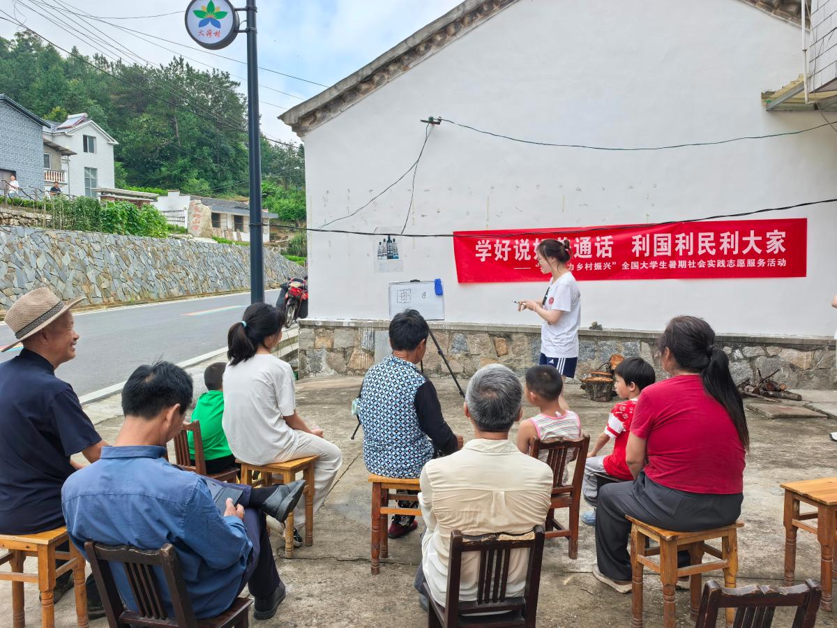 校团委“青筑科普”实践团在吉林靖宇县和北京昌平区开展实践活动,将推普与环保科普、红色教育相结合,设计“环保绕口令”等趣味环节,实现推普与绿色发展双赢双促。地球科学学院“大地之光・地蕴青疆”实践团远赴新疆库尔勒和石河子两地,通过地质科普、推普课堂、科学家精神宣讲等形式,在边疆地区推动国家通用语言文字普及与民族团结相融合。化学工程与环境学院“筑梦南华”实践团深入云南省楚雄州南华县红土坡镇,围绕“实用、有趣、易掌握”的原则,通过情景模拟、发音拆解、对比跟读等方式,巧妙纠正方言影响下的发音偏差;结合《标兵和炮兵》等经典绕口令互动,为山区孩子带去充满趣味的推普课堂;组织孩子们摆成“80”队形,以清晰响亮的普通话齐声呼喊“铭记历史,珍爱和平”,将语言训练与爱国主义教育深度融合。地球物理学院“石子筑梦”实践团面向云南南华的留守儿童和中老年群体,开展“一对一”家访教学、红色故事课、话剧表演等推普活动,累计覆盖200余人,有效提升了村民的语言应用信心。外国语学院“红乡语桥”实践团赴安徽金寨大湾村,通过入户调研、座谈交流、推普课堂等方式,深入了解村民在日常生活、子女教育、村务沟通、经济往来等方面的语言使用需求,创新采用“方言对译”“红色诗歌朗读”等互动形式,让普通话学习变得生动有趣。
