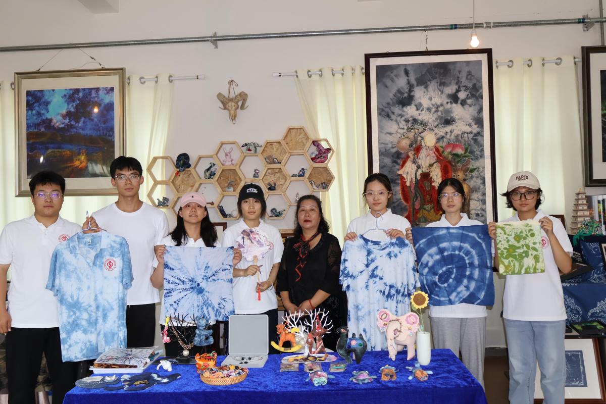 实践团深入兰州仁寿山非物质文化遗产传习基地。在扎染工坊,省级非遗传承人管兰欣展示了“扎、染、晒”等传统工序,成员们亲身体验从扎花定型到浸染氧化的全过程。蓝白相间的纹样在布料上自然晕染,每一件作品都是传统智慧与现代审美的完美融合。团队还探访了市级根雕传承人甘博,感受“化腐朽为神奇”的艺术哲学。甘博以刀为笔,依形就势,将枯木雕琢成游龙、隐士等栩栩如生的作品。他深耕技艺二十余年,创办根雕艺术馆,培养年轻匠人,让这门千年非遗在新时代焕发生机。