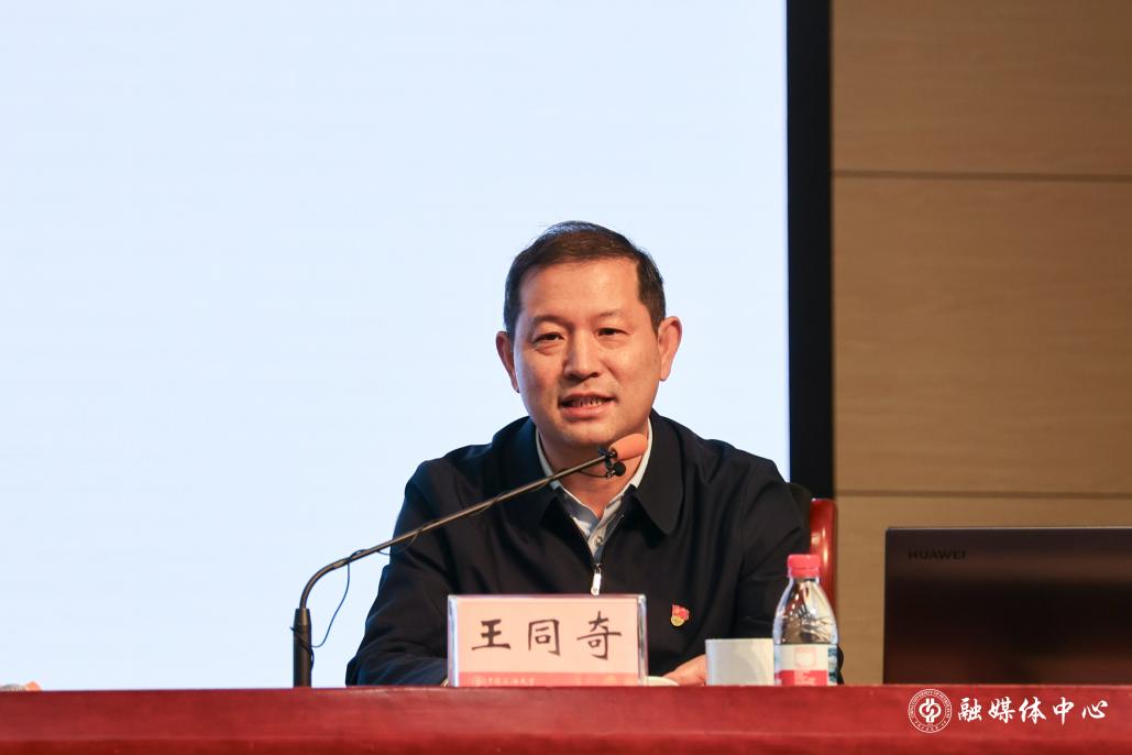 王同奇以“将青春奋斗融入强国复兴伟业,奋力书写为中国式现代化挺膺担当的青春篇章”为题,通过回望伟大的百年党史,串联起“实事求是、艰苦奋斗”的光荣校史;面对世界百年未有之大变局与能源革命,深入解读学校“三步走”的发展战略,用大庆精神(铁人精神)勉励中石大青年为端牢能源饭碗矢志奋斗。他紧密结合深入贯彻中央八项规定精神学习教育,系统梳理党的作风建设发展历程,阐释了开展学习教育的重大意义和目标任务,强调作风建设是青年成长的必修课,也是青年价值观塑造的“政治标尺”。希望青年师生牢记总书记嘱托,以“感恩党、听党话、跟党走”为信念坐标,以“能源报国、能源强国”为奋斗方向,在保障国家能源安全、推动绿色低碳转型发展中挺膺担当,在党和人民最需要的地方绽放青春之花。