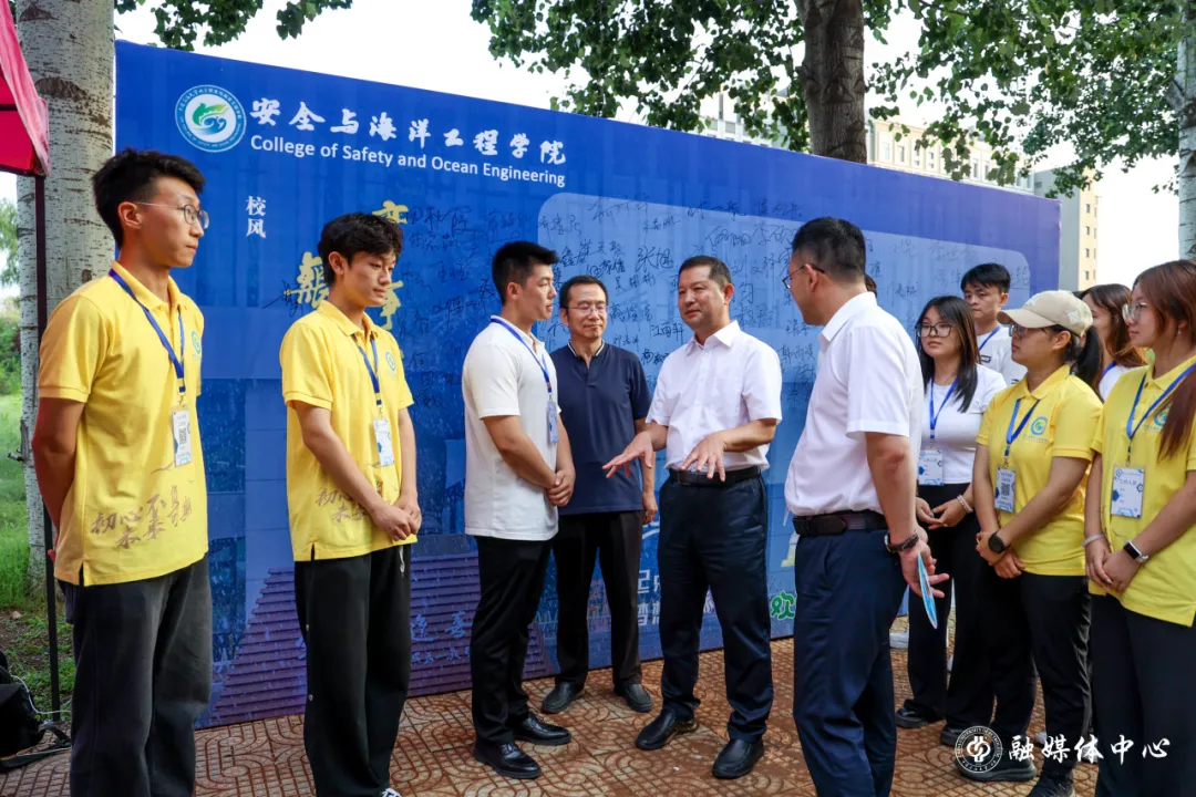 学校党委书记王同奇、校长金衍、党委副书记文永红前往报到现场和宿舍看望研究生新生,了解迎新工作开展情况。