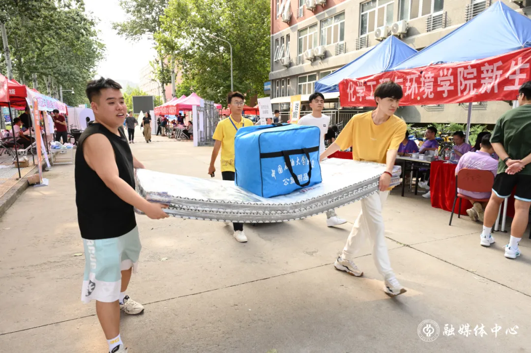 校园里,忙碌与秩序交织,热情与温暖并蓄。接过行李,推动推车,用质朴的行动传递最真诚的温暖。