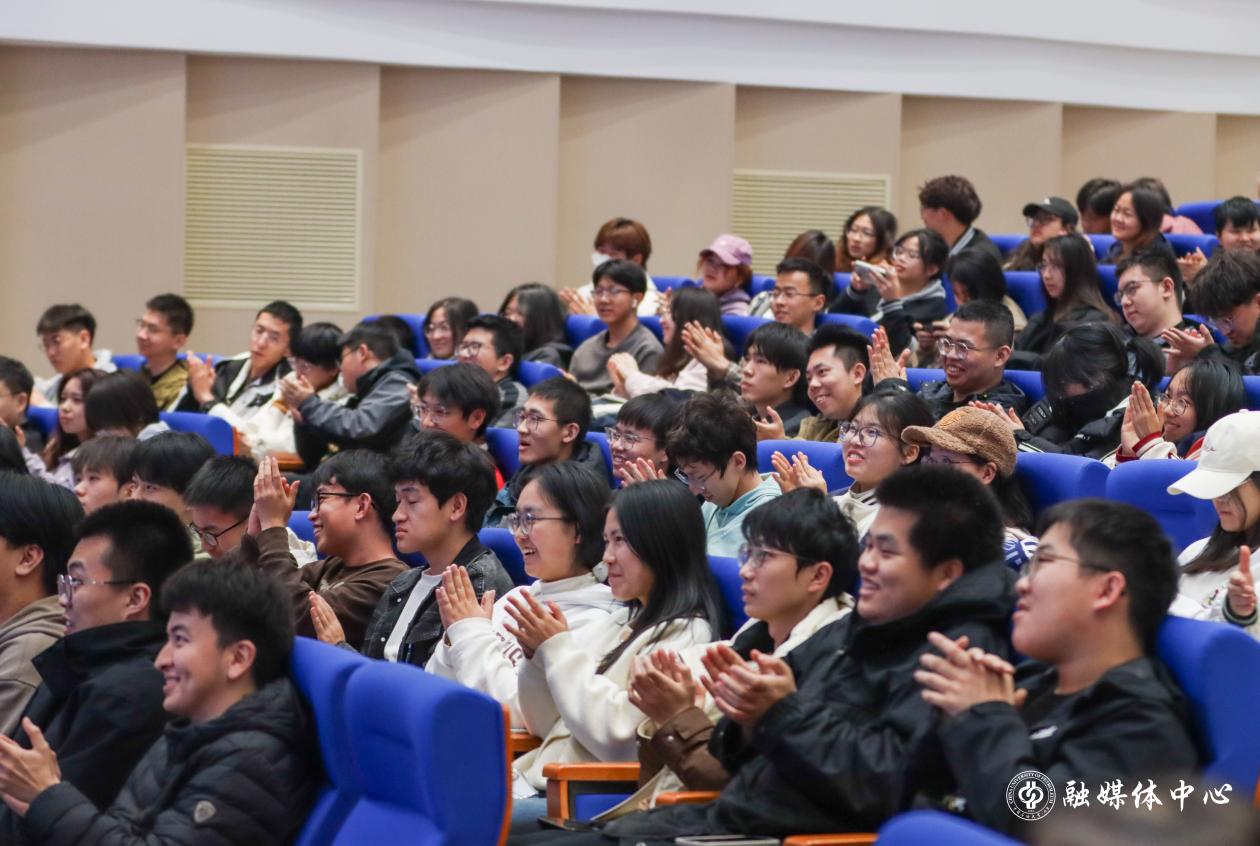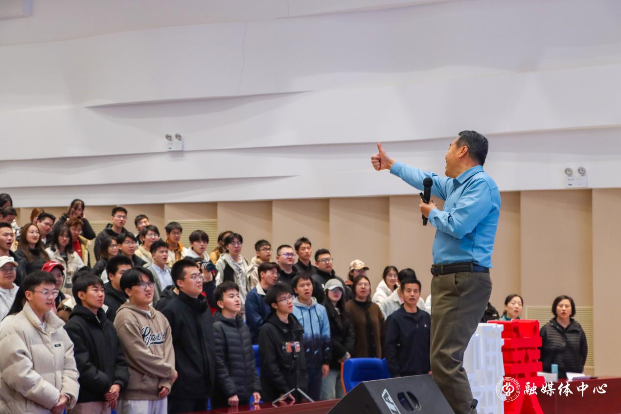 王永桦用专业且富有感染力的嗓音,带领同学们一同高歌。歌声回荡在音乐厅的每一个角落。临近尾声,他深情演唱《你是一面旗》。体育与人文艺术学院院长唐亮为王永桦颁发润心讲堂专家聘书。