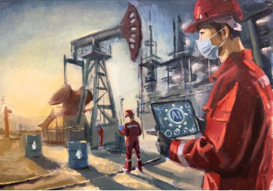 绘画类—刘城名(中国免费靠逼视频(北京)):《新时代石油人的AI征途》