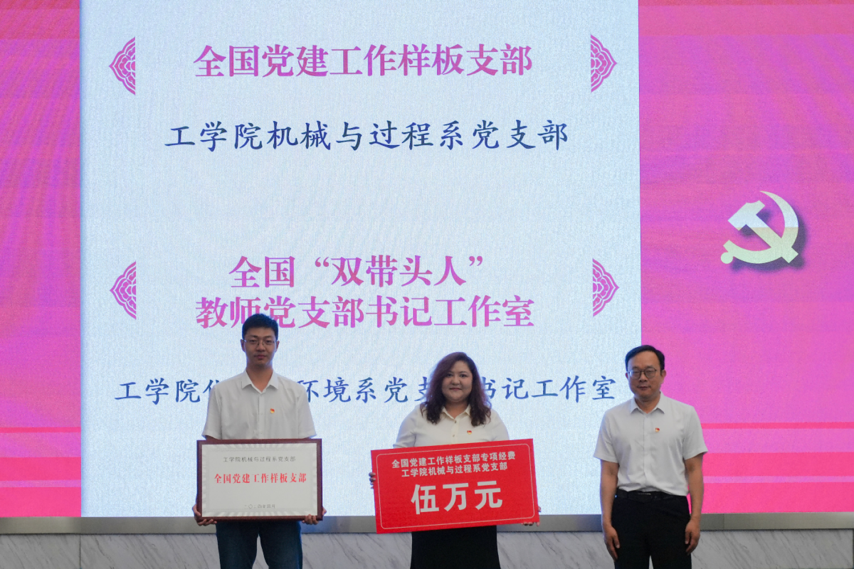 校区领导为入选全国党建“双创”“双带头人”教师党支部书记工作室单位授牌,为微党课大赛获奖者颁发证书。