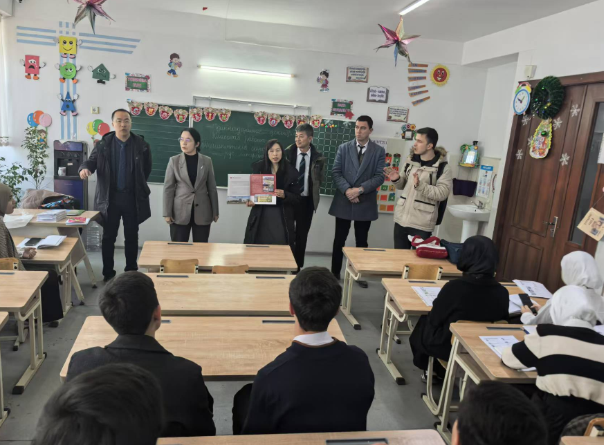 随后,代表团对比什凯克国立大学孔子学院及其多个教学点进行参观访问,受到孔子学院中方院长杜华、外方院长古丽扎特·伊萨玛托娃和比什凯克第95中学校长阿伊努拉·卡拉古洛夫娜的热情接待。访问期间,代表团深入到多个中文教学课堂现场,与学习中文的青少年学生一对一交流,重点宣介学校办学特色优势,深切感受浓厚中文学习氛围,诚挚欢迎优秀吉国青年到学校学习中文语言和专业知识,助力吉国人才培养,促进吉国经济社会发展,共建中吉命运共同体。该孔子学院已开设有9个孔子课堂,10个教学点,目前汉语学习人数超4000人。第95中学是其中一个教学点,为中国政府无偿援助建成,设有0-11年级全过程基础教育,其中汉语为该校2年级以上学生的必修课,许多学生已通过HSK3级以上考试,表示希望到中国上大学。
