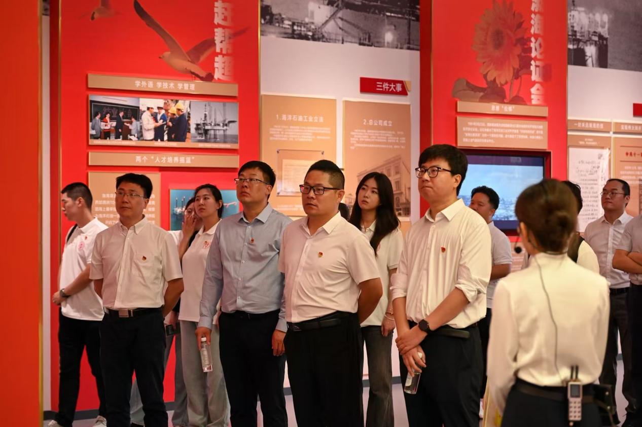博士团走进中国海油天津分公司三维可视化中心,全景感知石油全产业链,领略智能化技术的变革力量。在科学家精神教育基地和海洋石油工业陈列馆,通过珍贵史料,博士团深入学习向海而生、科技兴油、勇于超越、争创一流的精神谱系,体悟爱国、担当、奋斗、创新的海油精神。座谈会上,刘东东介绍了学院“一体三化六引领”工作体系,分享了党支部建在科研团队上的实践经验,双方就深化党建共建进行交流。