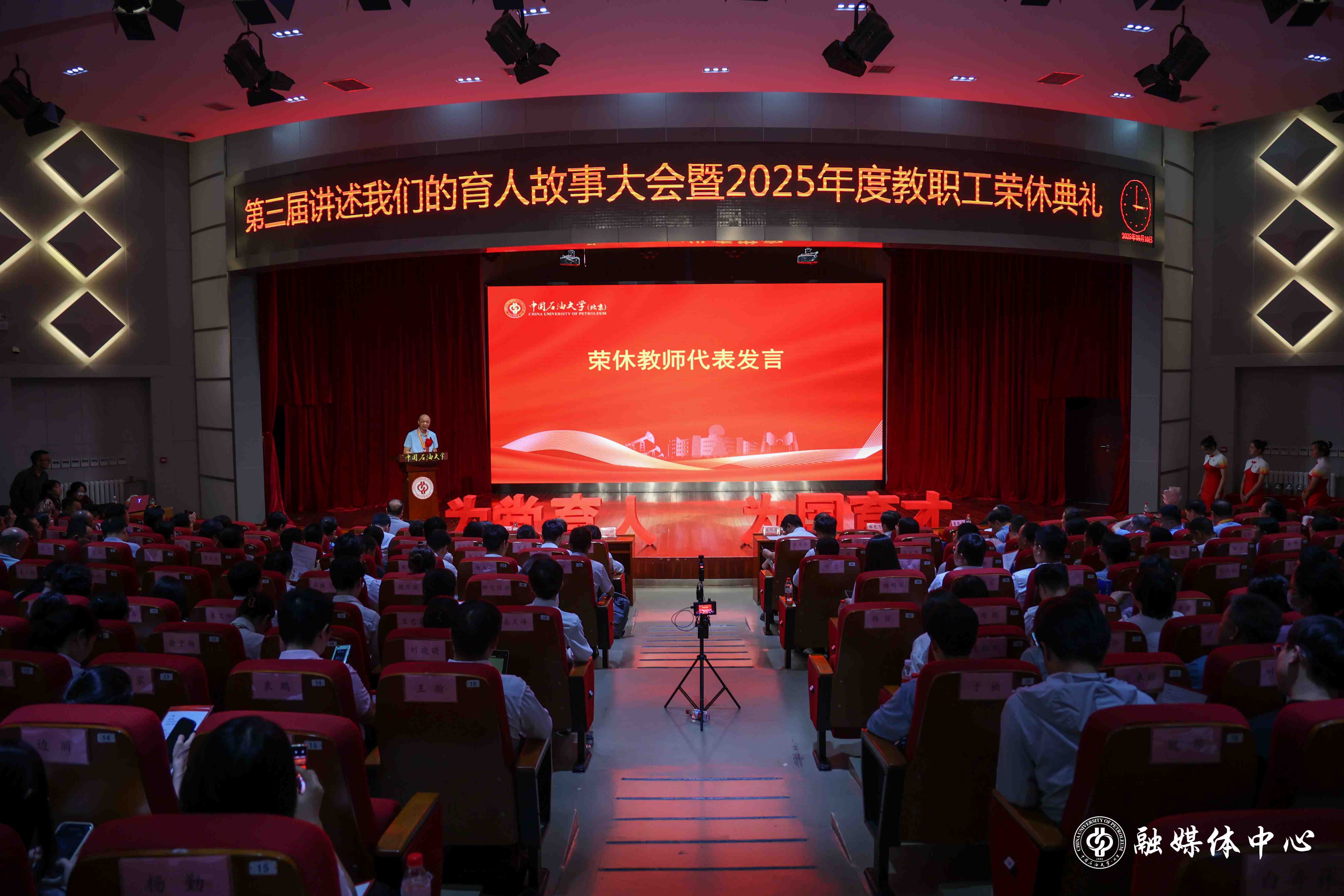 此次育人故事讲述会暨2025年度教职工荣休典礼是一场致敬与回顾,一个个朴实而深刻的教育瞬间,一段段细致而动人的育人历程,汇聚成磅礴的师道力量,感染了在场师生。中石大全体教师将牢记为党育人、为国育才的初心使命,传承弘扬教育家精神,为教育强国建设作出新的更大贡献。