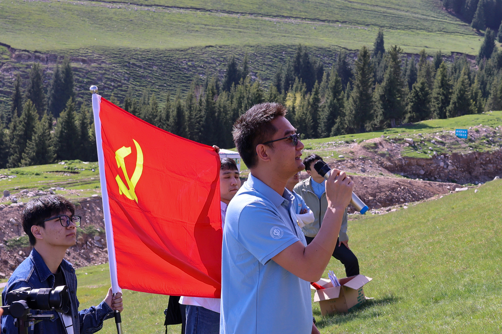微党课结束后,全体党员重温入党誓词,铿锵誓言与巍峨山峦共鸣,凝聚起“为党育人、为国育才”的坚定信念。实践团教师纷纷表示,将以更加饱满的热情、更加激昂的斗志、更加坚定的信念投身于教育事业中。华北电力大学援建教师骆小平动情地说道:“从独库公路十年贯通边疆幸福路,到校区十年培育西部建设者,两个‘十年’同样意义非凡。作为支援西部教育的一员,深感责任重大,使命光荣。”2021级资源勘探学生党员邸心光表示,独库公路是一代代建设者用青春与热血铸就的丰碑,而校区近十年的建设成果,也离不开广大援建教师和银龄教师的坚守和奉献。作为学生党员,自己定以前辈为榜样,将青春扎根西部,让理想绽放在祖国最需要的地方。