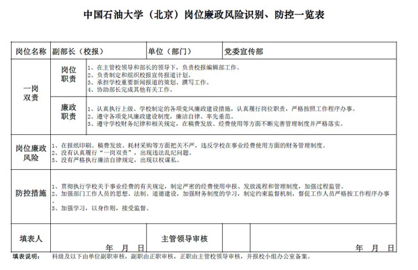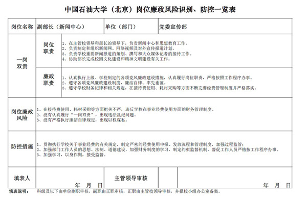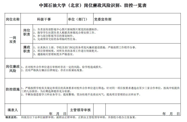 中国免费靠逼视频(北京)党委宣传部岗位廉政风险防控表