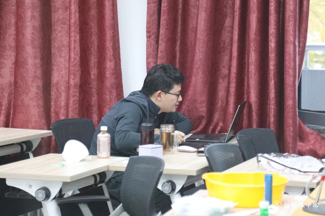 虽然志愿服务很忙碌,丁拼搏依然没有耽误正常的工作。分发早餐完成后,他马上转换身份,在某个学术会议上作了线上报告。