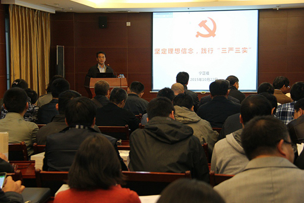 1022日下午,石大石油工程学院在中油大厦311会议室召开全院教工党员大会,院党委书记宁正福作了题为“坚定理想信念,践行‘三严三实’”的专题党课。院领导、各系教工党支部书记、各系教工党员参加了学习。