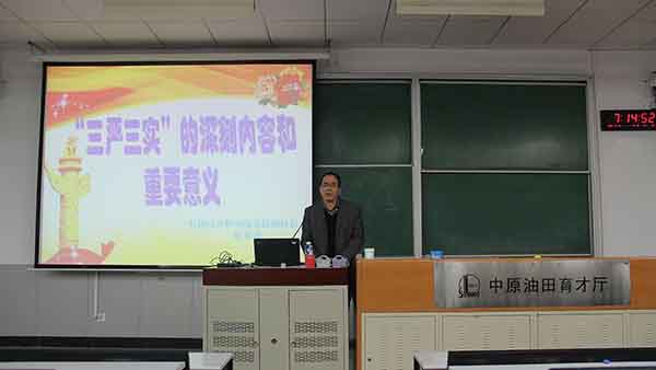 1026日晚,石大工商管理学院在第三教学楼208教室举行“三严三实”精神宣讲会。本次宣讲会邀请到中国社会科学院党校副校长夏春涛担任主讲人。
