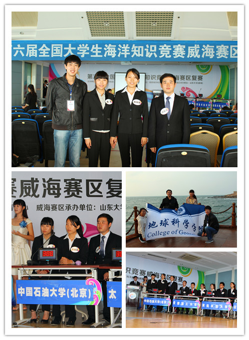 10月20日,由国家海洋局、教育部﹑共青团中央和海军共同主办的第六届全国大学生海洋知识竞赛威海赛区复赛在山东大学威海校区国际学术交流中心报告厅举行。石大地学院韩旭楠、徐振华、周爽三名同学参加了本次比赛,最终以出色的表现荣获本次复赛团体“三等奖”,领队老师崔卓获得“优秀指导教师奖”。
