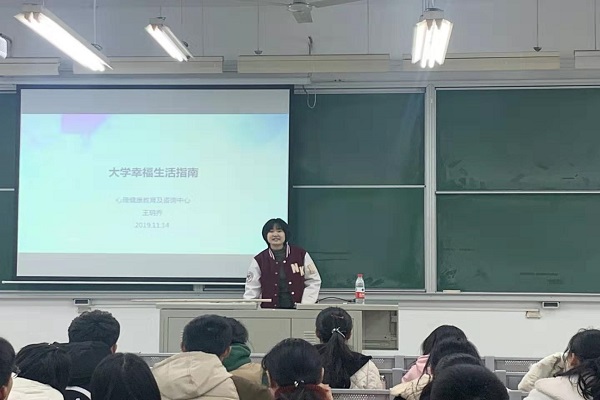 11月14日,石大经济管理学院在第三教学楼举办“大学幸福生活指南”心理专题健康讲座,学院2019级全体新生参加了活动。